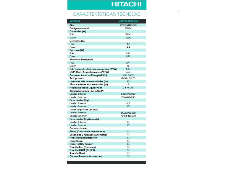 Sé el primero en valorar “Aire Acondicionado Split HITACHI 3200 F/C Inverter”