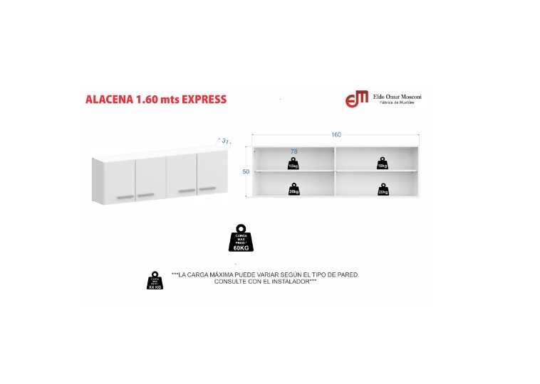 - Medidas: Ancho 160 cm – Prof. 31 cm – Alto 50 cm