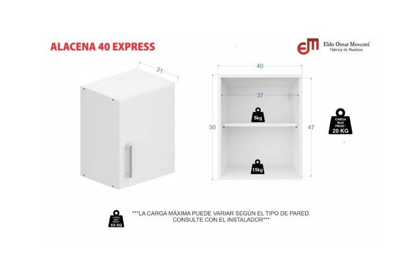 - La ALACENA 40 es un modulo individual para fijar a pared que te permitirá