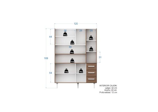 - Medidas: Ancho: 120 cm – Prof. 38 cm – Alto: 169 cm