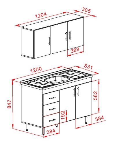 - Bajo mesada y Alacena 1.20 mts.