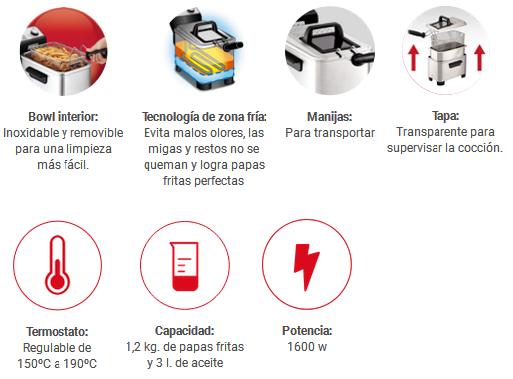 La freidora Easy Pro de acero inoxidable logra resultados profesionales ya que cuenta con un bowl antiadherente y una capacidad de comida de 1,2 kg o 3 litros de aceite. Pueden freirse todo tipo de alimentos, tiene filtro anti humo y olores. Una ventana en la tapa te da la posibilidad de supervisar la cocción.
