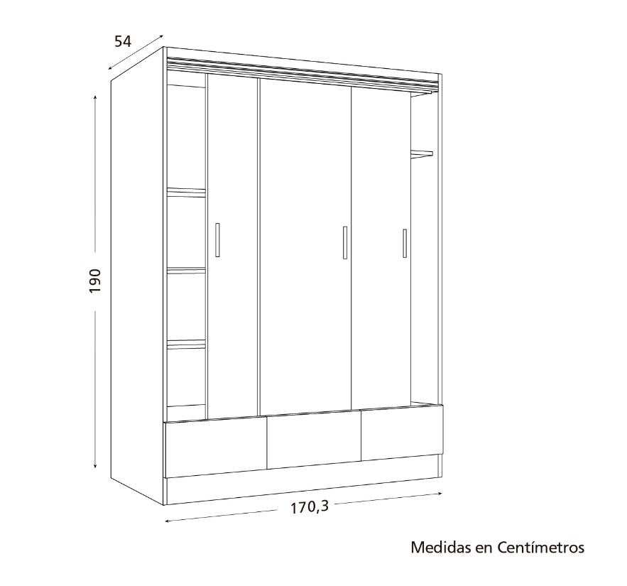 - Medidas: Ancho 170cm x Prof. 54 cm x Alto 190 cm.
