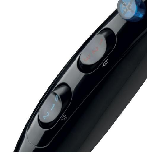 • El golpe de aire frío y la boquilla dirigible para regular el flujo de aire fijan el peinado de forma definida y precisa.
