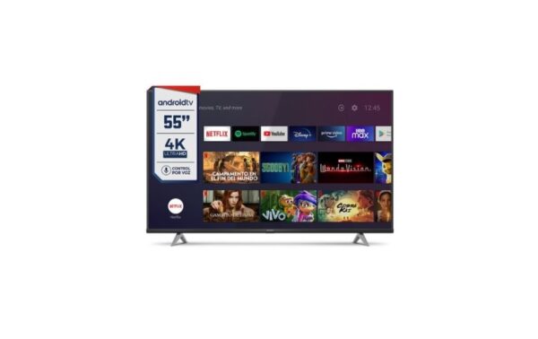 - HDR PANTALLA: Pulgada / Definición: 55″ 4K Ultra HD — Resolución / Formato: 3840 x 2160 px /16:9